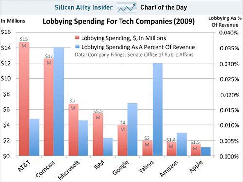 有趣的是,圖表顯示蘋果公司在游說方面的花費(fèi)最少,可能與它沒有市場壟斷有關(guān)。