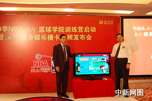 秉承NBA的體育及娛樂精神,在此次啟動儀式上,作為NBA官方指定使用電視產品——海爾彩電推出了健身娛樂模卡電視,并發布了“云媒體”戰略。海爾集團信息產品本部總工程師翟翌立博士介紹,海爾推出“健身娛樂模卡”電視旨在讓更多的人足不出戶就可以快樂健身并體會NBA精神。同時,隨著網絡時代的來臨,針對不同使用習慣用戶的需求,海爾彩電推出了“搜狐在線網絡?ā焙汀把咐紫螺d網絡模卡”,使得人們可以在家通過電視一鍵上網看高清大片,還將聯合更多的網絡內容提供商,讓用戶無需擔心個人儲存設備空間的限制,可以隨時、無限量地自由選擇自己所需要的網絡內容資源。