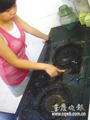 盧女士家燃氣灶的灶面被爆出幾個大洞