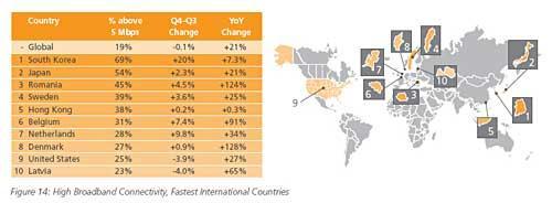 圖4:網(wǎng)速超過5Mbps的各國網(wǎng)民比例