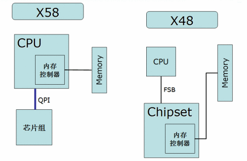 以上是Intel X58和Intel X48芯片組之間的規格對比列表。由以上列表我們可以看到,Intel X58芯片組相對X48芯片組來說,有許多方面的改進,北橋方面:Intel X58芯片組支持最新的LGA1366 Core i7系列處理器,而Intel X48芯片組支持上一代的LGA775 Core 2系列處理器;此外由于Intel Core i7系列處理器采用了新的QPI(Quick Path Interconnect)總線設計,QPI的每一個鏈接均為全雙工,提供6.4GT/s的帶寬,而每一個2-byte寬度的鏈接每個方向可以得到12.8GB的帶寬,從而使得一個單一的QPI鏈接就能夠提供25.6GB/s的帶寬,是LGA775平臺架構的2倍。