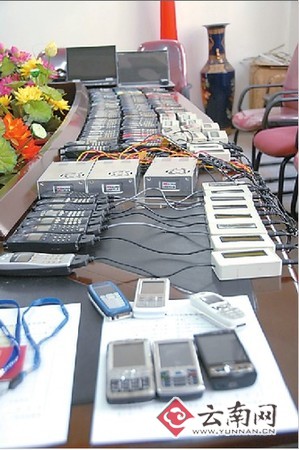 現場查獲了3臺筆記本電腦,一臺臺式電腦,37部短信群發器,170余部用于連接“土炮”發短信的各型手機,手機中均裝有短信卡,用于犯罪時轉賬用的40余張各個銀行的銀行卡、存折。3000余張他們自己設計制作的某某名牌牙膏商品銷售刮刮獎卡、2000余張香港某某集團刮刮獎卡。10余部自己使用轉接電話的手機。手機卡100余張等贓物。