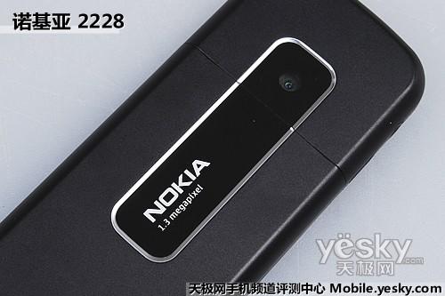 機身背板采用分體式設(shè)計,上半部分配有一顆130萬像素的COMS攝像頭,但諾基亞2228的電池后蓋在拆卸時,需要用些力氣,值得改進。
