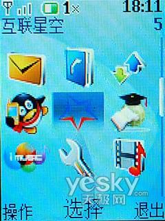 該機在采用S40系統,雖然屏幕尺寸有限,但諾基亞2228還是在待機桌面上設計了類似于Widget的邊欄,主菜單采用9宮格設計,二級菜單為列表結構,方便使用各項功能。