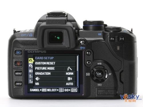 E-520機(jī)身尺寸為136*91.5*68mm,重量大約有475g,在單反家族中還算小巧輕便。E-520全身黑色為主,背面配備了一款2.7英寸23萬像素Hyper-crystal超晶液晶顯示屏,視野率達(dá)100%。E-520機(jī)身最大的特點(diǎn)就是其圖像穩(wěn)定系統(tǒng)使用了SWD(超聲波驅(qū)動)機(jī)構(gòu)移動傳感器,可以有效提高快門速度4檔。