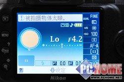 既然沒有翻轉屏和視頻拍攝功能,那取消Live View功能也是比較實惠的選擇,它配置了3.0英寸23萬像素的LCD顯示屏,光學取景器也和D60一樣(95%視野率、0.8倍)。而開機進入后,顯示的拍攝菜單也與以往的灰色有所不同,用了一個漸變的綠色,讓人看了心曠神怡,不過當我設置參數時,又回到了原來的灰色,有些無語。