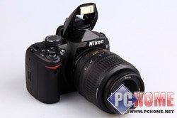尼康D3000的外觀實在沒什么好多介紹了,機身三圍為126×97×64mm和D60差不多大小,而握感非常舒適,作為男性手掌來說也不覺得小。同樣在正面鏡頭右側狹小的地方出現了三個“0”,看著有點擠。
