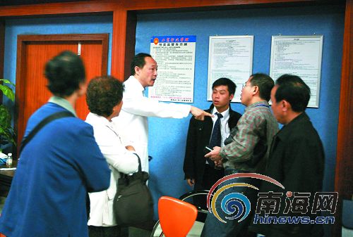 接群眾舉報,海口中山工商所的執(zhí)法人員趕到了現(xiàn)場調(diào)查。此時,在臺上講課的“專家”立刻停止了講課,臺下分發(fā)登記表及眼貼的工作人員也立刻將物品收了起來。