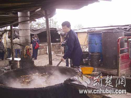 這名男子自稱曾某,來自紅安縣華河鎮。他交代稱,他從老家來武漢養了80多頭豬,但嫌養豬太辛苦,就以喂豬為名,以包月100元至400元不等的價格從吳家山、常青花園一帶的餐館買回殘渣剩菜,高溫處理后濾出表層的油,以每公斤2.6元的價格,賣給專門來收購的人加工成 “地溝油”流入市場。他稱每天僅濾出十多公斤的油,不過,執法人員對這個數量表示質疑,因為僅在查處現場就發現約750公斤的“地溝油”。