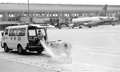 “4月30日起,四川機場集團就已按照民航總局的通知啟動預防預案,并發布工作流程。可以說雙流機場的防疫布控工作已經在有序地進行中!彪p流機場辦公室主任余吟波介紹,整個機場集團成立了6個特別小組,包括排查組、現場體溫檢測組、物資保障組、消毒組、信息組以及轉運組。