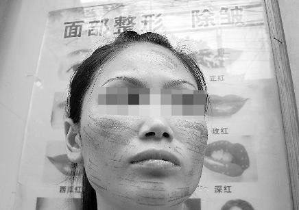 6月10日晚,喜歡美容的李信瓊在金花橋金興南路97號一家美容店內(nèi),做了一次所謂的“光子祛紅血絲”。但半個(gè)小時(shí)的功夫,她那張?jiān)詾楹赖陌變裘嫒荩共紳M了一條一條令人觸目驚心的“燒痕”。昨日,在屈辱和絕望的雙重打擊下,李信瓊再次來到店內(nèi)討要說法……
