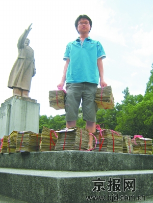 當時雷闖邀請了他的一個同學陪同。這個同學除了拍照之外,還承擔著另一個任務——給杭州市的各家媒體打電話,希望能有記者前來報道?山Y果讓雷闖很失望,這一次他并沒有引起媒體的注意。那個陪同的同學,也因為“受不了路人的目光”而中途離場。