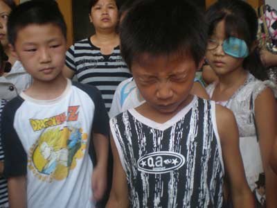 見記者前來,在過道內(nèi)焦急等待的一些學(xué)生家長紛紛圍上前,訴說小孩的遭遇。據(jù)家長夏女士稱,13日中午,她兒子小成回家后便稱眼睛不舒服,難以睜開,她當(dāng)時(shí)以為小孩眼睛進(jìn)了沙子,沒有太在意。不料,小孩午休后發(fā)現(xiàn)眼睛更難以睜開,眼珠變得通紅。