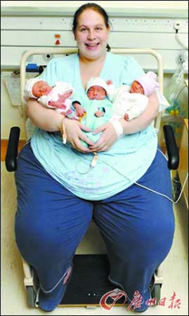 英國考文垂市體重達254公斤的產婦麗恩·索特近日成為全球最肥胖的三胞胎媽媽。她冒著極高的風險,在68名醫務人員助陣下奇跡般地剖腹產下3個健康寶寶,并承諾為了照顧子女要減肥。