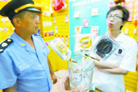閱讀提示 地地道道的安全套做成了小巧精致的掛件、各種包裝的口香糖、五顏六色的棒棒糖、造型別致的相框、漂亮的小車飾品,沒想到,這些另類安全套受到了一些未成年人的青睞。昨日,鄭州市工商執(zhí)法人員檢查發(fā)現(xiàn),光彩市場的一家商店銷售的這些另類物品涉嫌多種違規(guī),依法實施暫扣。