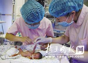 記者昨天上午來到淮安市婦幼保健院新生兒科時,只見在醫護人員的幫助下,冉冉的母親閔曉元正在用奶瓶給她喂奶,記者注意到冉冉的脖子上有一個銀制長命鎖。閔曉元笑著告訴記者:“這是我們特意為女兒買的,希望她長命百歲。冉冉這個名字也是慶賀她重獲新生的,但愿她的以后就像早晨的太陽一樣冉冉升起”。站在一旁的父親劉峰望著這個來之不易的女兒則百感交集。據其介紹,他與妻子婚后一直沒有小孩,去年年底在南京做了“人工助孕”手術后,妻子懷孕第24周時于今年5月30日在盱眙縣某醫院產下一對試管雙胞胎女嬰。由于這對雙胞胎嚴重早產,在醫學上稱之為極不成熟兒,小女兒剛出生就不幸夭折,體重只有800克的大女兒生命體征也不穩定,于是連夜轉至淮安市婦幼保健院進行搶救治療。他告訴記者,他們當時真的以為女兒根本沒有存活的希望,是醫院救了他女兒。前幾天醫院通知他昨天女兒可以出院時,他就在盱眙縣城一飯店訂了20桌酒席,宴請所有親朋好友于昨天中午一起熱鬧熱鬧慶賀女兒出院,F在飯店的客人都催他好幾遍了,讓他趕快將寶貝女兒帶回盱眙。他說:“醫院就是我們的恩人,現在還欠醫院7萬元治療費,我們一定慢慢還”。