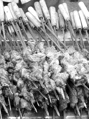 “一些燒烤店賣的羊肉串有一部分是豬肉的,只不過是用了一種叫‘羊肉精’的調料‘拌’的,用這種‘羊肉精’浸泡過的豬肉帶有羊肉味。制作過程中也有很多貓膩兒。要選肥瘦相間的豬肉,因為這樣的豬肉和羊肉外觀比較相似,吃起來比較香,口感也好。把原料切成小方塊,每一塊都要肥瘦兼顧,拌入十多種作料后,就制成了‘羊肉串’。”這名廚師說。