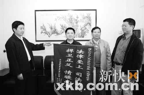 受害人家屬向法院送錦旗。曹晶晶/攝