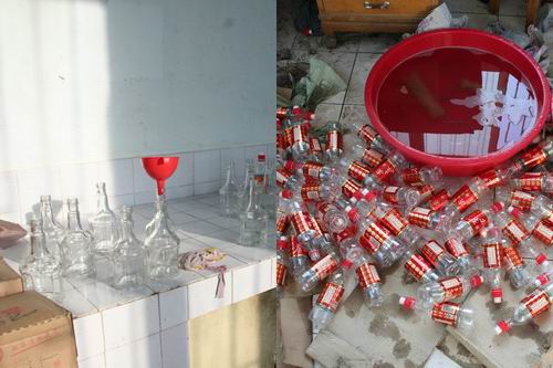 經審訊,自2008年7月以來,3名犯罪嫌疑人以1萬余元的價格(每只空“五糧液”酒瓶4元、商標8000余元)從浙江溫州一徐姓男子手中購進了300套假冒的“五糧液”包裝及商標,利用低檔“尖莊”白酒(每瓶約10余元)灌制假“五糧液”銷售到薩爾圖、龍鳳等一些煙酒店、超市,非法牟利10萬余元(已揮霍)。
