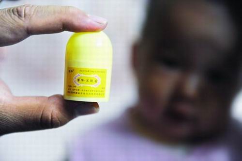 “孩子今年2月23日出生,一個月大的時候,經常出現濕疹,但一直沒有找到有效的治療方法,3月24日帶她去社區醫療服務中心打乙肝疫苗,保健醫生推薦我買苗嶺潔膚霜給孩子用。”梁紅巖稱,回家的路上,就在家附近的一家藥店,她花10.8元買了一瓶。