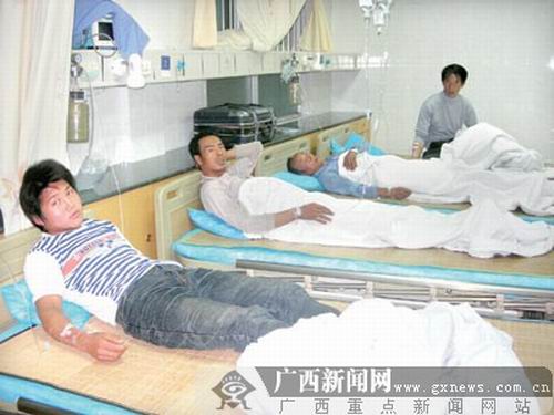 小楊告訴記者,出現(xiàn)中毒癥狀后,林場負(fù)責(zé)人就立即通知了120急救中心。晚上7時30分左右,有中毒癥狀的工友就陸續(xù)被送到南寧市第二人民醫(yī)院了。“我是晚上8時許來到醫(yī)院的”。