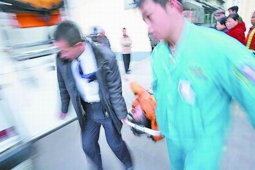 昨天下午5時20分,記者趕到桐柏南路227號院時,正趕上急救人員抬著一名嘔吐不止的女子上救護車。女子大聲哭喊著,不時用手抓著胸口。在院內1號樓4單元門口,5名醫護人員正在搶救一名躺在地上的婦女。此時,心電圖的顯示器上,已經是一條直線。據住在4單元一樓西戶的張老太太介紹,下午1時許,他們請了兩名三鼎家政公司的女保潔員到家里打掃衛生。兩人一開始都在廚房里打掃,到了下午4時50分,其中一個比較年輕的讓另一個人去打掃廁所。此人到廁所里后,拿出一個藍色的塑料瓶,把里面的液體倒進便池中開始清刷,不到兩分鐘,她就喊著“我受不了啦”從廁所里跑了出來,然后拉開房門就跑到了外面。等較年輕的女保潔員跑出去后,她已經癱倒在地上,大口大口地喘氣。幾分鐘后120趕到,她已不會動了。