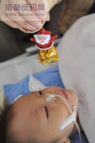 “寶貝,你醒醒!”母親向女士除了抹眼淚外,每天都要呼喚女兒幾百次,并給女兒按摩手腳。圣誕節那天,向女士買了個小小圣誕老人,掛在女兒的病床頭,平時的一些玩具也堆在女兒身邊。向女士說,孩子醒來的第一眼,要讓她看見美的東西。