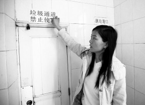 在李嬌的指引下,記者來到事發現場,此時,“肇事”的垃圾通道門上已經重新上了鎖,并掛上“垃圾通道禁止使用”的警示標語。“這是出事后醫院設置的。”李嬌出示了事發當時拍下的照片,“醫院的做法實則已經承認過錯,但就是不肯和我們協商賠償。”