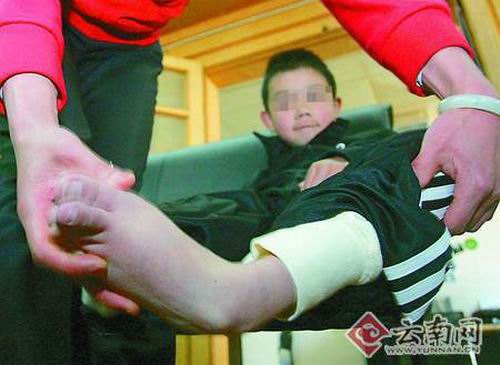 張蘭輝夫婦帶著檢查結果回到昆明后,仍然沒有放棄救治兒子。爸爸在外拼命地賺錢養家糊口,給兒子買藥治病,媽媽則在家全心照顧兒子,一家人的經濟都壓在爸爸身上!皟鹤用刻斓乃幬镄枰ㄙM70塊錢,隨著一天一天地長大,總要上學!”張蘭輝說,4歲那年,他們把兒子送到了幼兒園,在幼兒園里吃飯、走路、上廁所都要靠老師了。