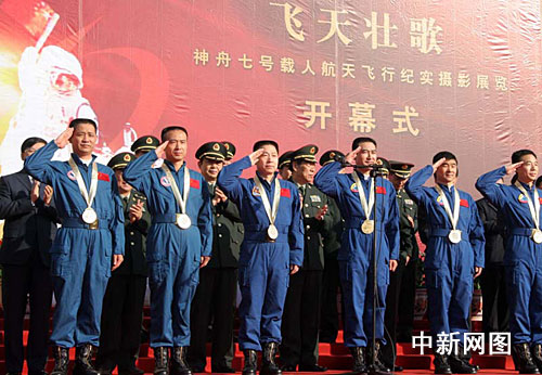 11月9日,以“再現(xiàn)‘神七’飛天全過程 記錄漫步太空經典時刻”為主題的《飛天壯歌——神舟七號載人航天飛行紀實攝影展覽》,九日在北京中國人民革命軍事博物館開幕。