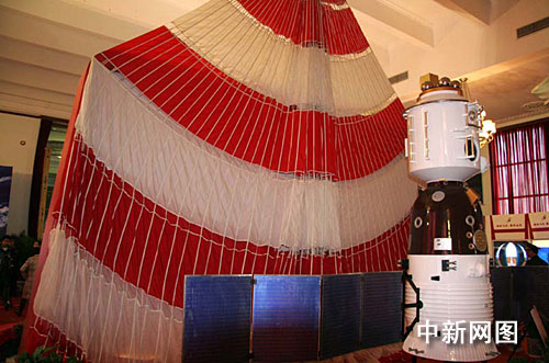 “神七”1200平方米主降落傘及載人飛船模型。孫自法 攝