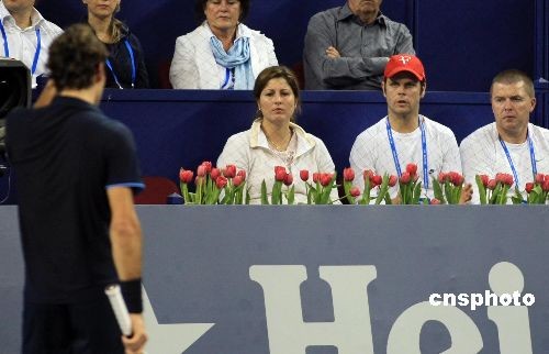 費德勒的女友米爾卡(前排右三)到上海網球大師杯現場為這位瑞典“天王”加油助陣。