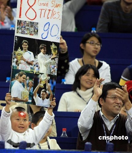 圖為上!靶≠M迷”為費德勒吶喊助威。中新社發 湯彥俊 攝