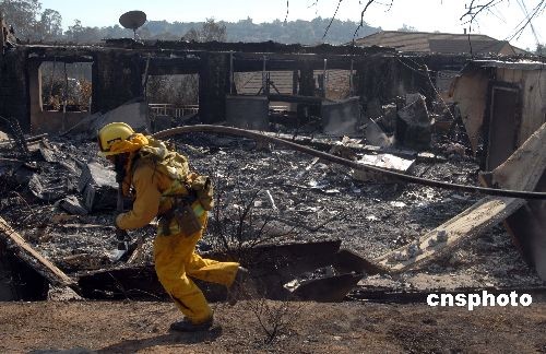 十一月十四日,在距離洛杉磯一百六十公里的加州圣塔芭芭拉縣已經有百余間房屋被大火吞噬,數千人被迫緊急撤離,至少七人受傷,過火面積達兩千五百英畝。盡管許多好萊塢明星在圣塔芭芭拉縣有房產,但截至目前還沒有明星豪宅被焚的報告。加州州長施瓦辛格今天宣布,圣塔芭芭拉縣進入緊急狀態。
