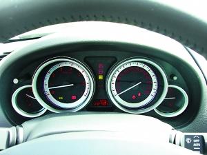 桶形儀表盤背景光同樣炫麗且具運(yùn)動(dòng)氣息。