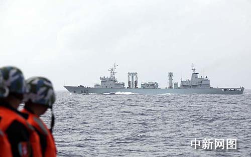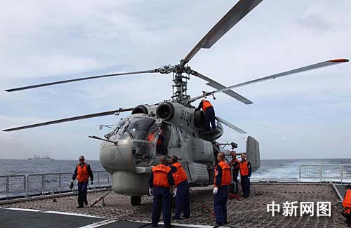 中新網“海口”艦12月28日電(記者 孫自法)12月28日,中國海軍遠洋護航艦艇編隊在南中國海航行。“海口”號導彈驅逐艦艦載直升機進行飛行訓練準備。