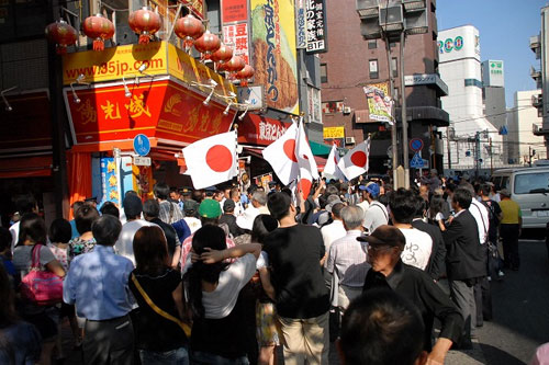 這位員工告訴記者,自己在日本學習、生活了很多年。日本人給人的印象幾乎都是內斂和禮貌的,就算他們有不滿也不會輕易說出來,給人的感覺很有內涵。這回見到的滋事的日本人是我以前所沒有見到過的。這位員工介紹,少數日本人在池袋示威并不是第一次,然而這次卻是頭一回有所指的在華人經營的店鋪前示威。他們選擇在“陽光城”前示威是有目的的,因為這里距離電車池袋站北出口只有數十步之遙,選擇這里無非是要吸引路人的關注。