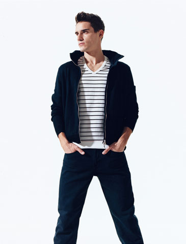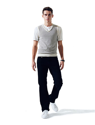 二:做舊的黑色?肯定!Marky Ramone 可能更喜歡他的黑色牛仔褲,但時,如果你穿著一件運動背心外套,或者休閑毛衣的話,仔褲最好也要具有同樣的優雅質地才可以。我們建議你選擇一跳炭灰黑色的略有褪色的仿舊效果仔褲,然后白色T恤,加上運動鞋,就可以了。