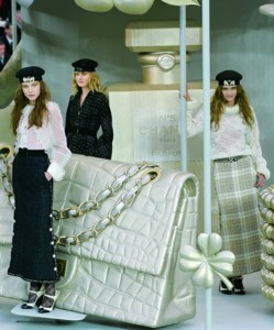 近日,Chanel在北京四季酒店舉辦了08秋冬時裝新品發布,一場華麗的“旋轉木馬”秀成為北京時尚圈一大亮點。在“旋轉木馬”設計里,其實并沒有木馬的影子,菱格紋包、珍珠項鏈、雙C標志、鑲著滾邊的Chanel外套與浪漫蝴蝶結等經典圖騰俏皮地迎接著人們的目光。