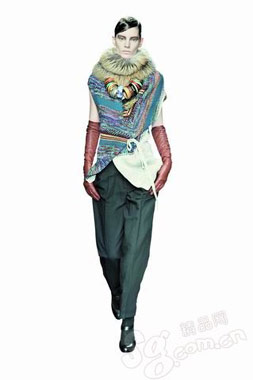 彩色針織、華麗皮草以及夸張彩色頸飾的綜合運用之下,打造出令人過目不忘的寒冷高地民族印象。