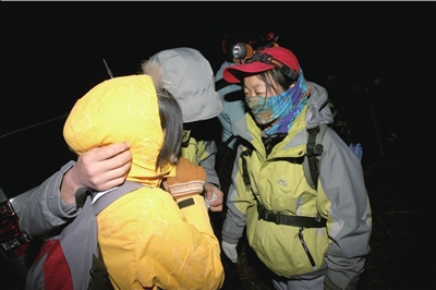 “海貓”是綠野救援隊(duì)的隊(duì)長(zhǎng)。據(jù)他介紹,由于被困的6名網(wǎng)友佩戴著GPS,接到求助后,通過(guò)電話聯(lián)系他們很快確定了6人被困的坐標(biāo)。“當(dāng)時(shí)6人只帶了2-3升水和一頓午餐,隨著溫度越來(lái)越低,隨時(shí)面臨著失溫的危險(xiǎn)”。救援隊(duì)員迅速集結(jié)。當(dāng)晚8點(diǎn)多,第一組救援隊(duì)員根據(jù)坐標(biāo)向6人被困地點(diǎn)進(jìn)發(fā)。