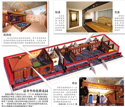 曹靜樓:由于當時乾隆將許多宮廷珍藏都移至倦勤齋,幾乎所有茶幾、窗臺上都放滿了文物,所以要恢復乾隆時期的所有陳列,將是一個很大的工程。目前,我們正在研究展陳方案。