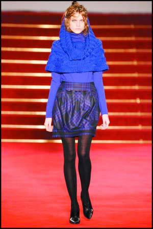 寬松的斗篷式樣披肩,和緊身服飾搭配相得益彰,再加上熱門的流蘇長靴,便會(huì)波希米亞感覺濃郁,很是帥氣;緊身的短款針織披肩,在整體的搭配上也要以簡(jiǎn)潔為主,單一的色彩、收身的裝束會(huì)放大別致的披肩,讓披肩成為全身的亮點(diǎn)。(巫倩姿)