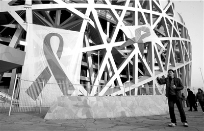 昨天,一個高20米、寬17米的巨型紅絲帶亮相鳥巢。鳥巢周圍還將陸續懸掛4個巨型紅絲帶。國務院防治艾滋病工作委員會辦公室負責人韓孟杰表示,當前,對艾滋病病毒感染者和病人的歧視仍然是妨礙艾滋病防治工作開展的主要障礙之一。記者 歐陽曉菲 葉洲 攝影報道