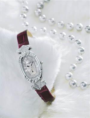 浪琴表瑰麗系列復刻版腕表藍寶石水晶表鏡再配以酒紅色真皮表帶,古典優雅,40顆璀璨美鉆,無比閃耀。