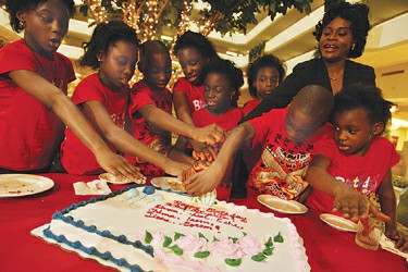20日,7個(gè)孩子和他們的父母、73歲的外婆珍妮特、6歲的妹妹費(fèi)沃以及一直照顧他們的親朋好友歡聚一堂,在休斯敦一家飯店舉辦宴會(huì)。親友為孩子們點(diǎn)燃蛋糕上的蠟燭,唱起生日歌。