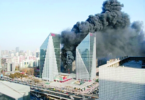 “轟”的一聲,一股黑色濃煙從樓頂騰空而起,“像大樓爆破一樣。”一名目擊的出租車司機介紹說,當時他正開車經(jīng)過樂成國際購物中心,隨著一聲炸響,購物中心三樓頂層的設(shè)備間起火,四周的隔板都隨著顫動,火苗也從擋板縫隙往外躥,“我開車到了廣渠門內(nèi),還能看見濃煙。”