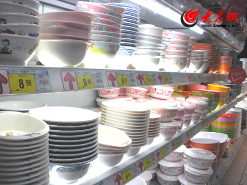 近日有報道稱,國內部分企業使用不合格原料生產仿瓷餐具,給消費者帶來潛在的健康危害。今天,本網記者對濟南的幾家超市進行暗訪,發現仿瓷餐具仍在市場上進行銷售。