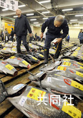 據(jù)相關(guān)人士稱,當(dāng)天的最高價(jià)為青森縣產(chǎn)的藍(lán)鰭金槍魚,最后拍得一條約為1千萬(wàn)日元(約合人民幣74萬(wàn)元),每公斤約達(dá)7.5萬(wàn)日元。據(jù)悉,這是近8年來(lái)的最高價(jià),迄今為止的最高價(jià)為2001年的一條藍(lán)鰭金槍魚,價(jià)格為2020萬(wàn)日元。