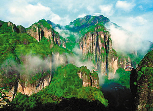 第二天的游程更精彩,我們早上去了大龍湫,到底占了個“大”字,水勢落差達197米,是小龍湫的整整3倍。沿著蜿蜒曲折的游道,觀兩邊奇形怪狀的山峰,那芙蓉峰初看像一把大剪刀,導游說還是“張小泉”牌的呢。可換一個角度居然變成了帆船的桅桿了,再走幾步看又幻作一只啄木鳥,再走再瞧,又像極了一頭要偷吃蜂蜜的狗熊,真是移步換景。